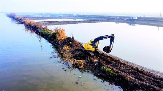 1月17日,洪湖市新堤碼頭附近的魚塘被挖開,與大湖連成一片。