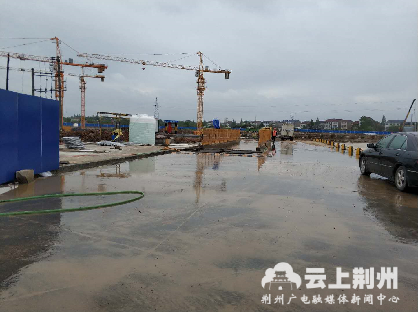 記者來(lái)到位于郢城鎮(zhèn)太暉村復(fù)興大道北側(cè)的“荊州區(qū)棚戶區(qū)改造太暉還建小區(qū)”工程的施工現(xiàn)場(chǎng),雖然天氣不好,工作人員仍在緊張施工。