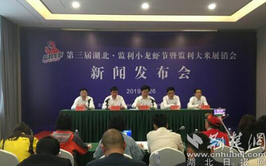 第三屆湖北·監(jiān)利小龍蝦節(jié)暨監(jiān)利大米展銷會(huì)新聞發(fā)布會(huì)現(xiàn)場(chǎng)。