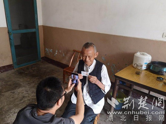 村民楊美芹因多年腿疾,臥床不起,也無法自行通過手機(jī)APP方式完成生存認(rèn)證。萬陽和同事們來到楊美芹家,現(xiàn)場拍攝生存認(rèn)證照片,并送上政策宣傳資料。