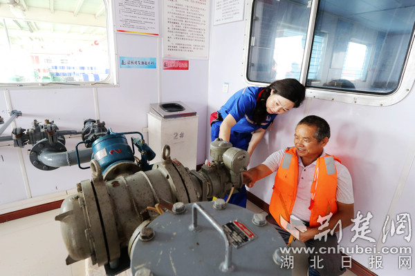 早在2014年,文珍發(fā)現(xiàn)躉船上配有污水處理裝置,還是德國(guó)進(jìn)口設(shè)備,她把供貨廠家喊來3次,親自拜師學(xué)藝,學(xué)會(huì)了使用這套環(huán)保設(shè)備。自此,荊州李埠水上加油站的生活污水都會(huì)進(jìn)行殺菌、消毒、紫外線、粉碎等凈化處理。