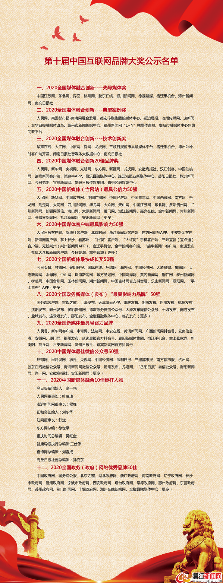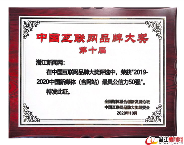 潛江新聞網(wǎng)訊(記者 曹以成)12月16日,記者獲悉,第十屆中國互聯(lián)網(wǎng)品牌大獎(jiǎng)名單已于日前揭曉。此次評(píng)選中,潛江新聞網(wǎng)與人民網(wǎng)、新華網(wǎng)等一同躋身2019-2020中國新媒體最具公信力50強(qiáng)。