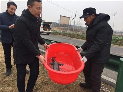 楊新杰介紹,大年初六他在自家院子后西荊河邊看到這條擱淺的娃娃魚,通過新聞和水產(chǎn)站宣傳了解到娃娃魚是國家二級保護動物,屬于瀕危物種要好好保護,就通知了水產(chǎn)站。隨后,一行人驅(qū)車1小時來到漢江,將娃娃魚輕輕放入江水中。似乎是舍不得離開放生它的人,又像是還沒有完全適應(yīng)江水,娃娃魚在岸邊淺水處逗留了幾分鐘,才緩緩游往江心。