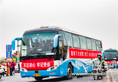 荊楚網(wǎng)客戶端—荊楚網(wǎng)消息(通訊員 羅時(shí)雨)“白衣執(zhí)甲援潛來、春風(fēng)伴你歸家去”。3月23日上午,山西援助潛江醫(yī)療隊(duì)隊(duì)員乘坐的大巴緩緩駛離潛江,湖北省消防救援總隊(duì)漢江支隊(duì)潛江大隊(duì)全體指戰(zhàn)員與潛江人民一同為英雄們送行。