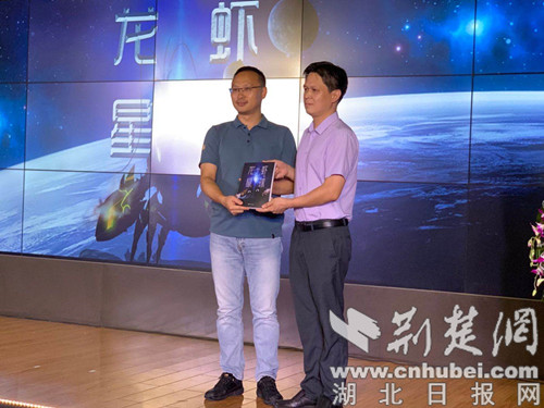 《龍蝦星球》作者之一江波,是國內(nèi)科幻最高成就獎“銀河獎”“星云獎”獲得者。他現(xiàn)場分享創(chuàng)作歷程并代表作者向潛江教育系統(tǒng)贈送《龍蝦星球》簽名圖書。