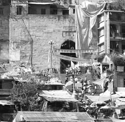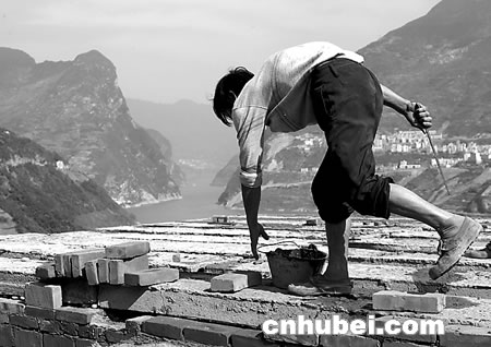 (圖1)西陵峽兵書寶劍峽口,村民正忙著蓋新樓房。 (圖2)一名兒童在已拆得面目全非的房屋前玩耍。 (圖3)奉節(jié)老城開濟門城墻如今只剩殘垣斷壁。 (圖4)祖孫倆坐在云陽老縣城二期水位標(biāo)牌前。 (圖5)奉節(jié)縣居民在新縣城百米速寫畫墻上覓舊城蹤影。 (圖6)萬州老城最繁華的勝利街只留下了指示路牌。 ______________________________________________________
