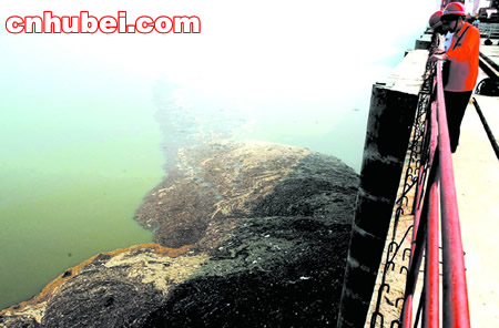 昨日19時30分,三峽大壩壩前水位達(dá)到125.32米,按此蓄水進度,11日可達(dá)到135米蓄水設(shè)計水位。圖為葛洲壩集團一公司職工沈凱旋在關(guān)注蓄水情況。