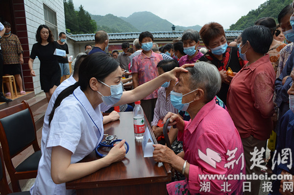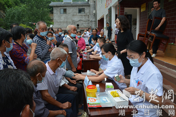 楊柳村位于位于鄖陽區(qū)西南部的大山深處,距離十堰市區(qū)50余公里,是十堰市稅務(wù)局鄉(xiāng)村振興聯(lián)系點(diǎn),村里以老年人居多。聽說市人民醫(yī)院的專家要來義診,村民們?cè)缭缇蛠淼酱逦瘯?huì),在市稅務(wù)局駐村工作隊(duì)的精心組織下,佩戴口罩排起了長隊(duì)。簡(jiǎn)短的介紹儀式結(jié)束后,來自市人民醫(yī)院心血管內(nèi)科、兒科、消化內(nèi)科、睡眠醫(yī)學(xué)科、內(nèi)分泌科等專業(yè)學(xué)科的8位專家便立即開始為村民診療。