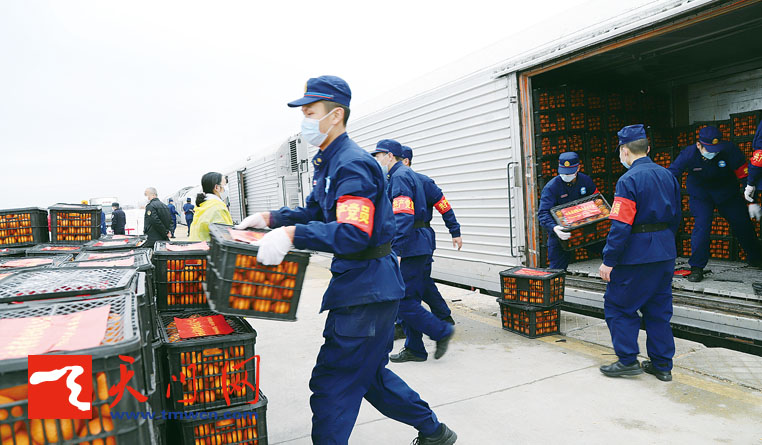 3日下午,天門市消防救援大隊(duì)30多名消防員在江漢鐵路天門東站轉(zhuǎn)運(yùn)物資。當(dāng)日,云南省委、省政府捐贈(zèng)的90多噸生活物資到達(dá)江漢鐵路天門東站、潛江北站貨場(chǎng),這批物資包括沃柑、牛奶、甜椒、番茄、萵苣、杏鮑菇、鮮花等,定向捐贈(zèng)給我市各鄉(xiāng)鎮(zhèn)辦場(chǎng)園衛(wèi)生院和市一醫(yī)、中醫(yī)醫(yī)院、三醫(yī)、婦幼保健院等醫(yī)院一線醫(yī)護(hù)人員。(天門網(wǎng)全媒體記者謝紅艷 攝 )