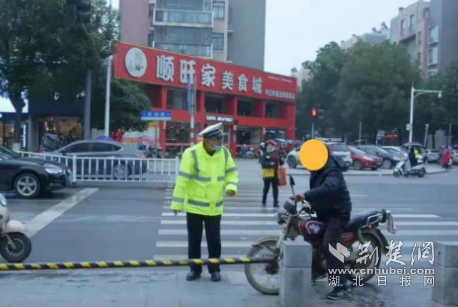 城區(qū)重點(diǎn)路段勸阻摩托車逆行。通訊員供圖
