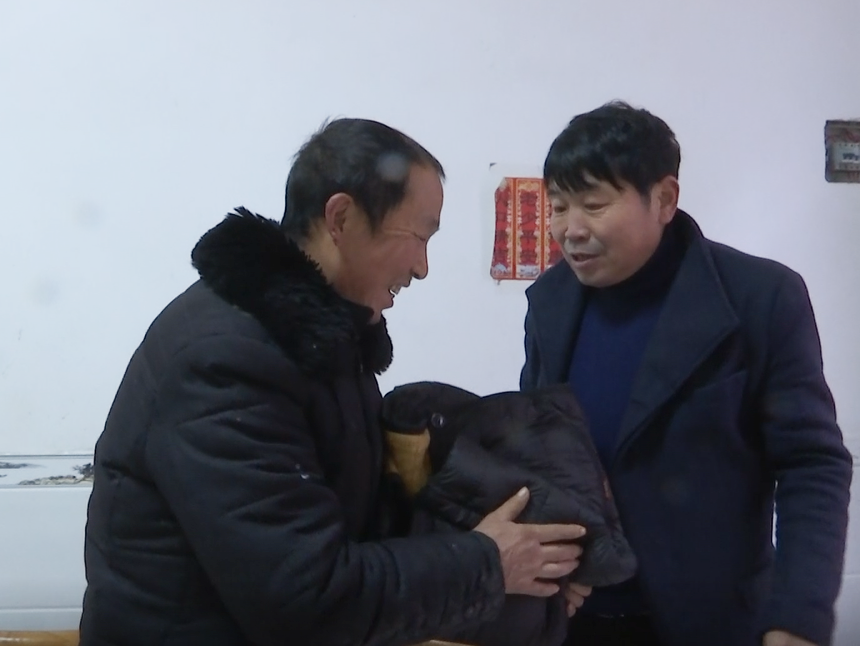駐村工作隊員來到脫貧戶家中,親手為他們穿上棉衣。脫貧戶們緊緊握住工作隊員的手,連連道謝。“很感謝!感謝駐村幫扶干部冒著雨雪給我們送大衣過來?!标惖赅l(xiāng)同興村脫貧戶劉書廣感激地說到。