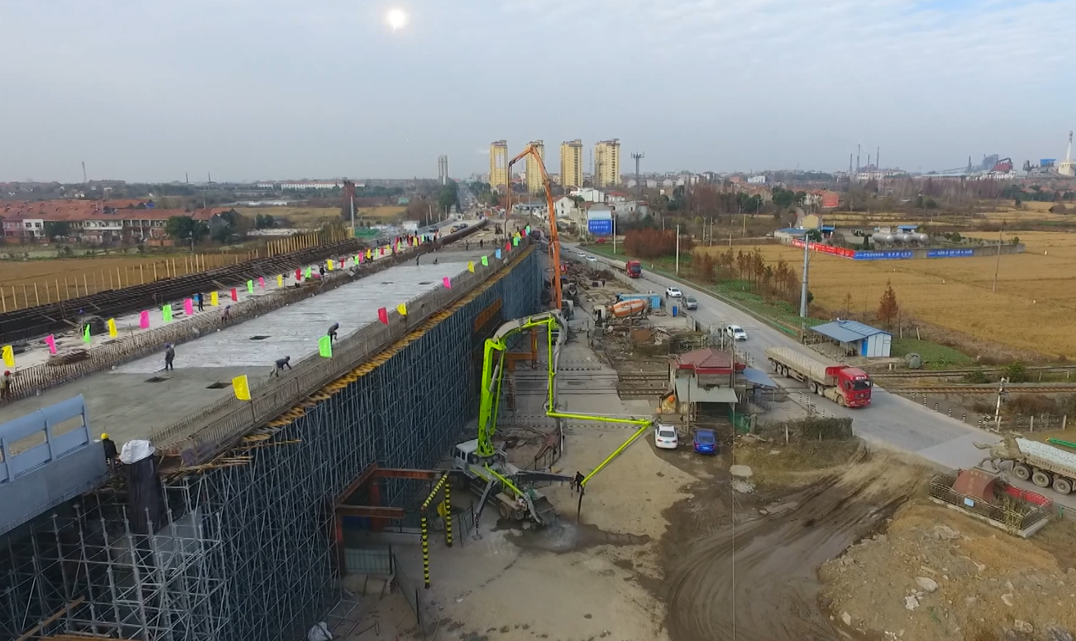 ▲應城曹大公鐵立交橋橋面順利合龍,有望2021年春節(jié)前通車