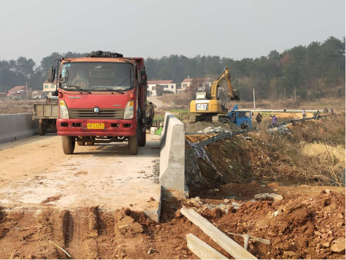 距離母女橋不到5公里的接官鄉(xiāng)吊橋,現(xiàn)已完成橋梁主體工程。當日,安陸市農(nóng)村公路管理局施工隊正在進行改造橋梁的接線道路建設,力爭讓村民農(nóng)歷新年走新橋、走好路。
