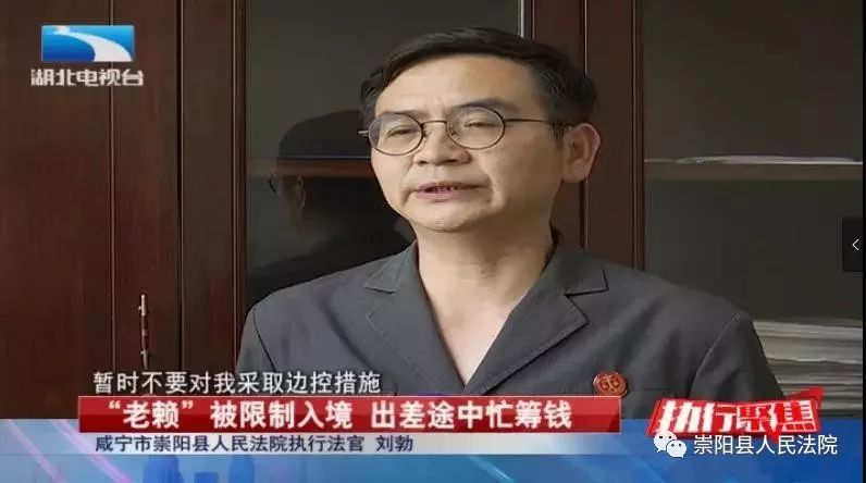 崇陽縣法院執(zhí)行法官劉勃:“法院現(xiàn)在對(duì)失信被執(zhí)行人有個(gè)措施,就是限制出入境,我就跟他講,我說你回不來了?!?/p>