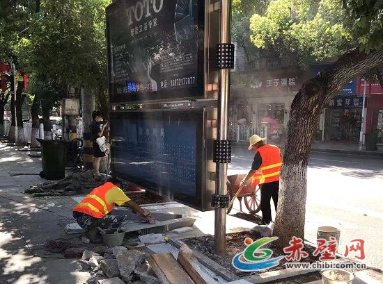 赤壁網(wǎng)消息(記者 聶愛陽)近日,在赤壁城區(qū)公交站臺、大眾餐館、家聯(lián)超市、老水利局、一橋……都能看到他們的身影——烈日下的一抹桔,用電鉆、角鋤、鐵鍬撬動原有的地面,用泥漿、錘頭、抹泥刀,鋪設(shè)上全新的大理石。
