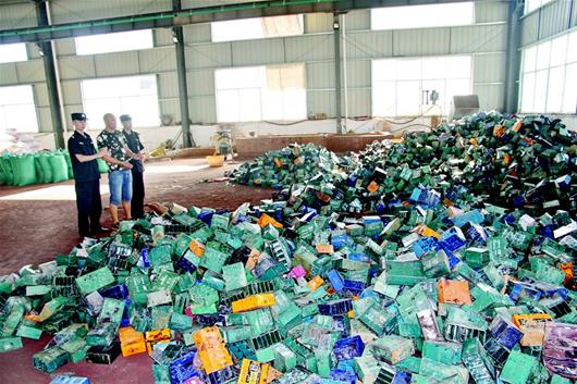 接到案情,城管執(zhí)法大隊民警順藤摸瓜,發(fā)現(xiàn)了兩個非法工廠,一個拆解鉛蓄電池,一個提煉鉛,都沒有排污設備,廢液等直接排放。兩個工廠均沒有生產(chǎn)許可等相關證照,涉嫌污染環(huán)境,今年9月7日,警方端掉這兩個窩點,抓獲嫌疑人10余名。