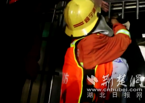 圖為消防員救出被困人員現(xiàn)場(chǎng)。通訊員 葛棟 攝