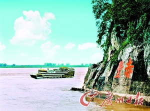 在赤壁縣城西邊的赤壁古戰(zhàn)場,如今依然江水滔滔。當(dāng)年“赤壁之戰(zhàn)”,經(jīng)此一役,定下三分天下格局。李白詩曰:“二龍爭戰(zhàn)決雌雄,赤壁樓船掃地空。烈火張?zhí)煺赵坪#荑び诖似撇芄!毕﹃栁飨,紅色的陽光灑在江面上,怎不讓人想起那烽火連天的三國?