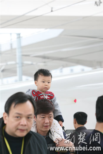中午11時46分,列車?繌V州北站,歷時僅2小時46分鐘。在站臺上,記者遇到了一位帶著小孩的江西九江乘客,她興奮告訴記者,“我是慕名專程到武漢坐高鐵快車到廣州探親的,沒想到不到3個小時就到了,簡直不敢想!