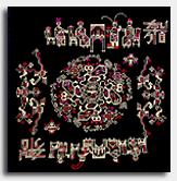 湖北銀飾以白銀為原料,純度高,久用耐磨,不易腐蝕,光澤奪目,極顯高貴;一般為富裕人家的飾物,常有耳墜、戒指、手鐲、發(fā)簪、手鏈等。最為精彩的是帽飾人物,常用高浮雕、淺浮雕、鑲嵌和鏤空的表現(xiàn)手法,圖案多為龍鳳吉祥、長命富貴、麒麟送子等。制…… 詳細 —————————————————