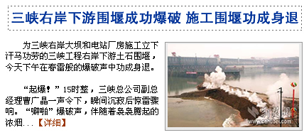 三峽右岸下游圍堰成功爆破 01日14:03
